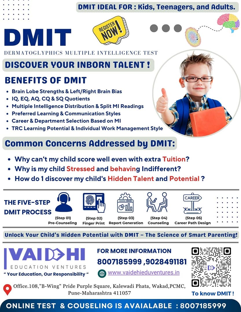 Founded by seasoned professors and mentors, Vaidehi Education Ventures was born from a passion for helping individuals realize their true potential. Our ethical approach to DMIT analysis ensures the utmost confidentiality and data security.